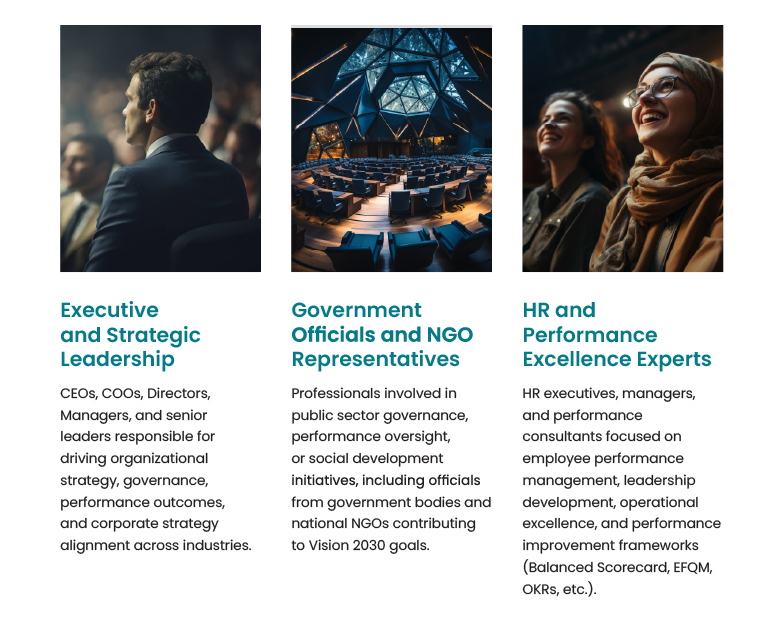 The Performance Excellence Forum & Awards Gala is designed for senior professionals and decision-makers committed to enhancing strategy execution, performance management, and organizational excellence. This event is particularly relevant for individuals and organizations seeking to align with Vision 2030 objectives and advance their performance maturity.
